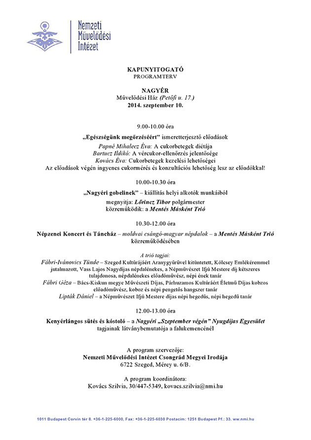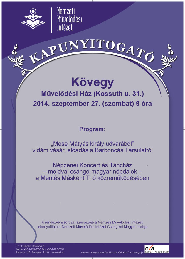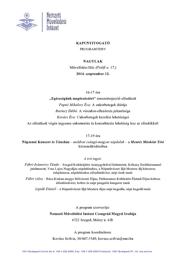 11-13h  XIII. Kobzos – énekes – hegedűs – furulyás moldvai népzenei kurzus - ismétlés, zárás