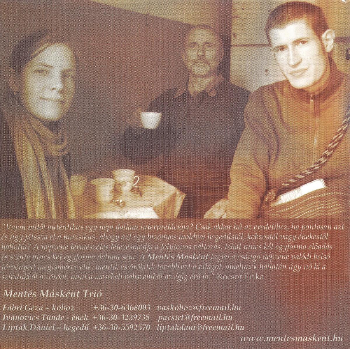 Menyegző – Balladák és kolindák Bartóknak – 2007. A lemez egyetlen hosszabb, megszakítás nélküli kompozíciót tartalmaz. Epikus keretét egy munténiai ballada és annak moldvai csángó magyar párhuzama adja. Közös témájuk, a Mioriţa (Bárányka) néven ismert ballada-séma központi jelentőségű a román népi kultúrában. Az ősi történetet értelmezhetjük úgy is, mint az alkotó ember szembenézését a halállal. A csángó magyar változat – Szép fejér pekulár – felelgetés-szerű jelenléte által megvalósul a két ősi testvérkultúra új párbeszéde. Ebbe a keretbe illesztettünk bele néhány szorosabban-lazábban idekapcsolódó más dalt, táncdallamot és kolindát, azaz román karácsonyi éneket.